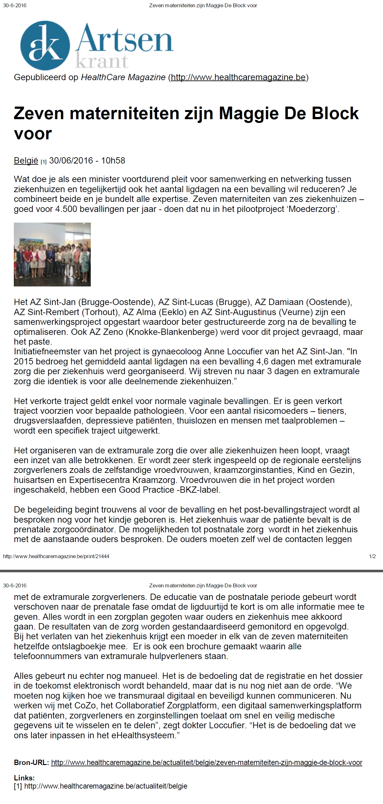 Pers Zorg anders Klik hier om het artikel te lezen en het filmpje te bekijken. Focus Om het filmpje te bekijken klik hier De specialist Om het artikel te lezen klik hier. De artsenkrant